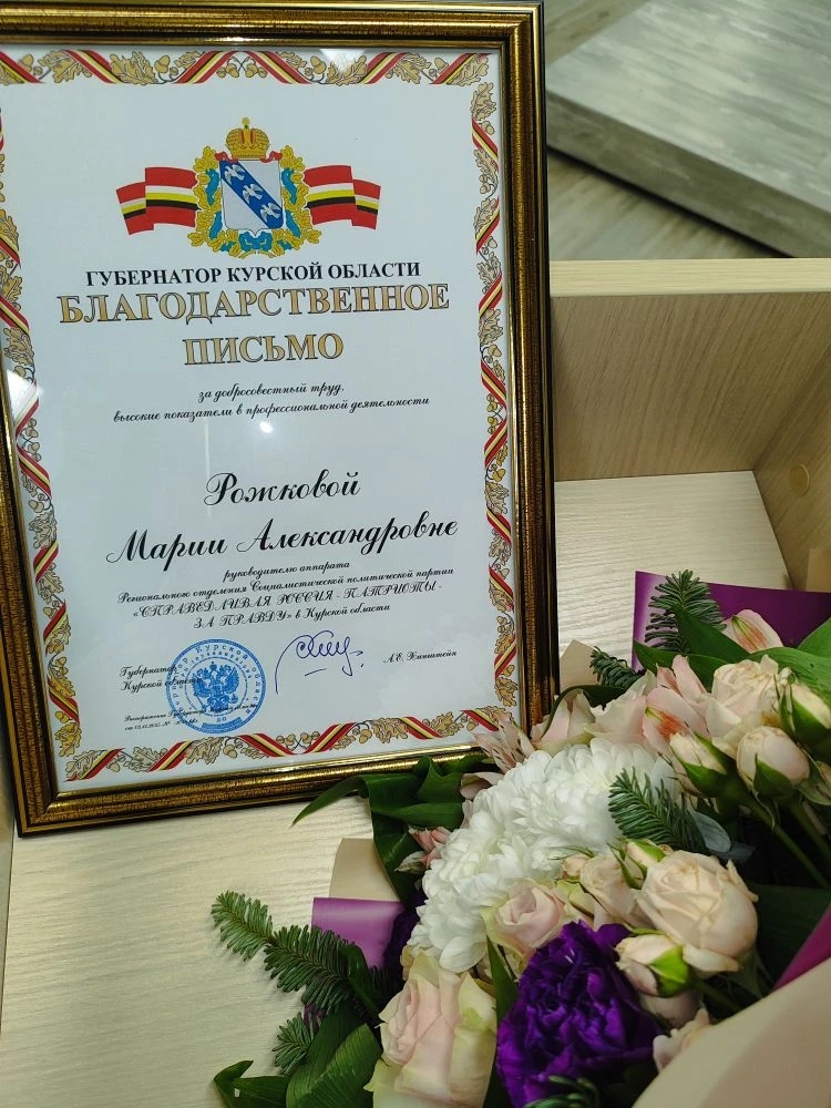 Губернатор Курской области Александр Хинштейн вручил благодарственное письмо члену Избирательной комиссии Курской области от партии СР, руководителю аппарата партии в Курской области Марии Рожковой – за добросовестный труд и высокие показатели в профессиональной деятельности. Признание, за которым стоят не красивые слова, а реальные дела.